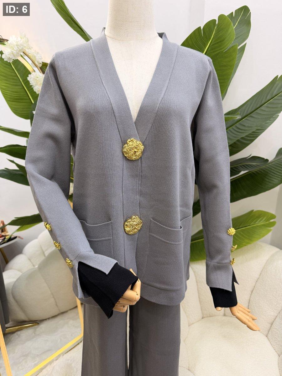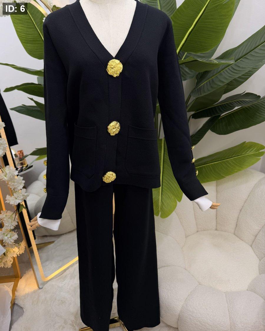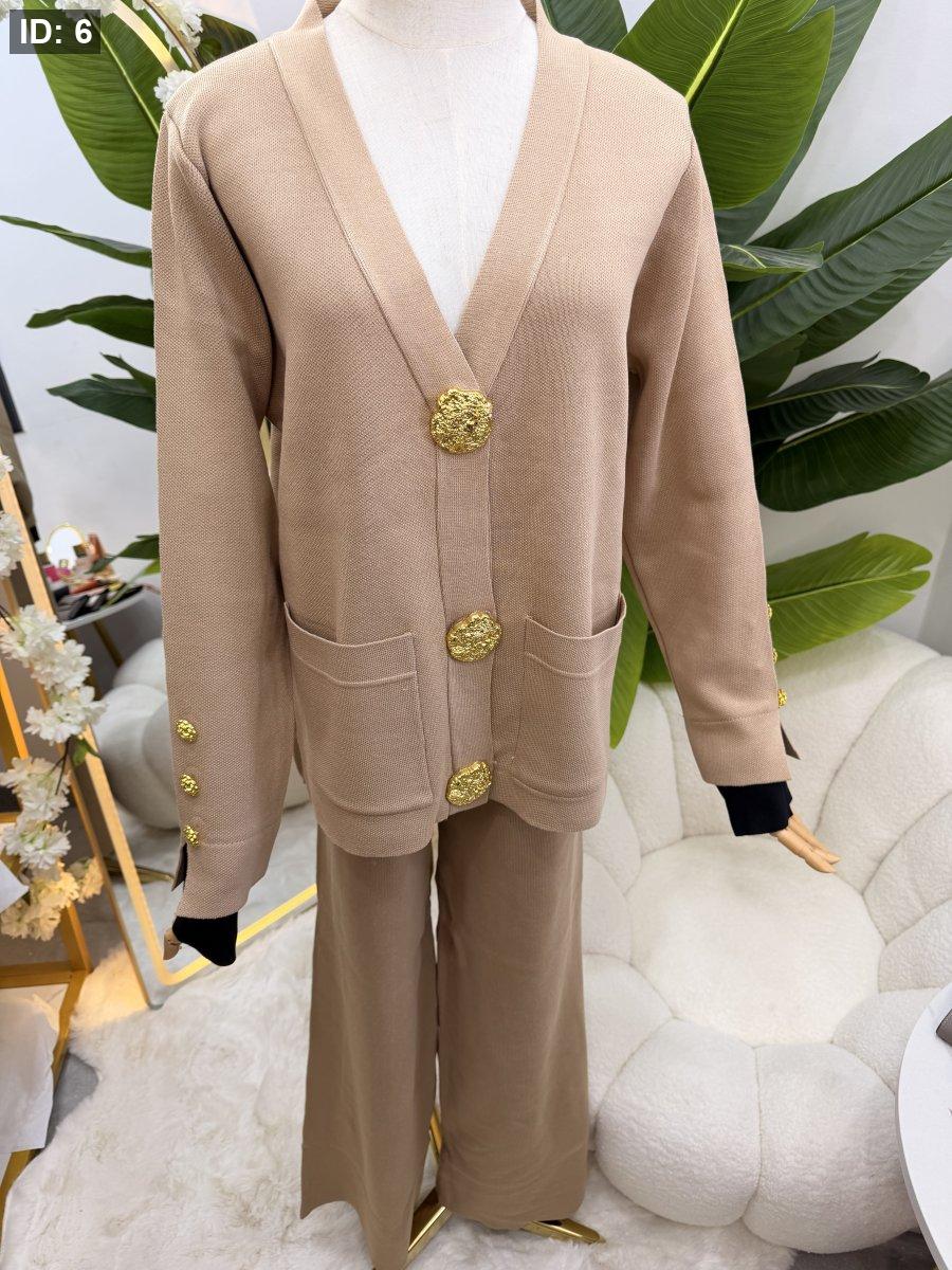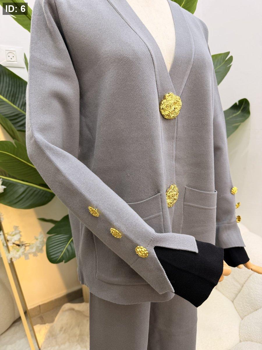 طقم صوف بازرار ذهبية - جاكيت مع بطلون عريض