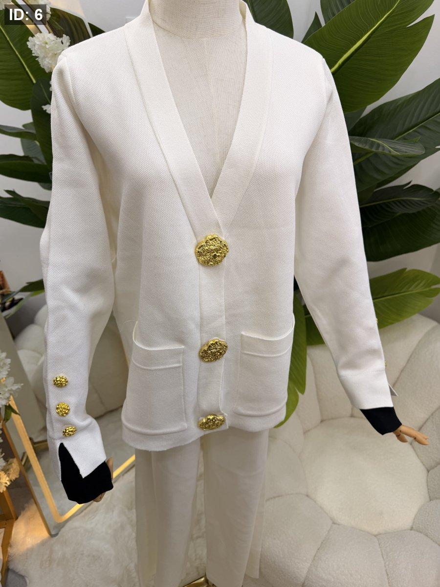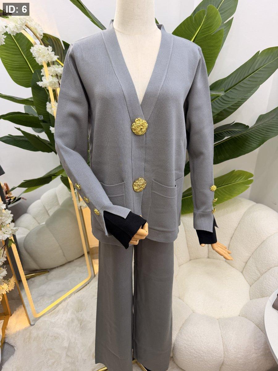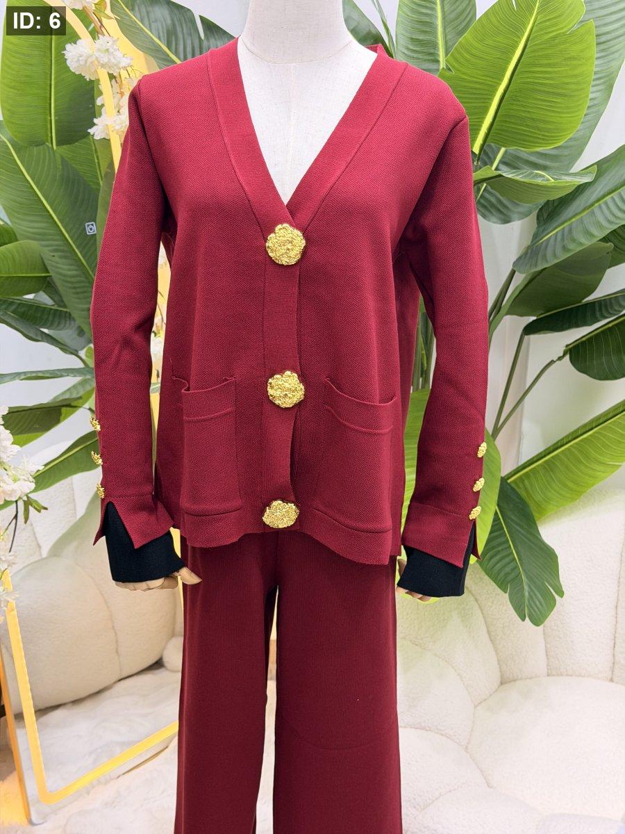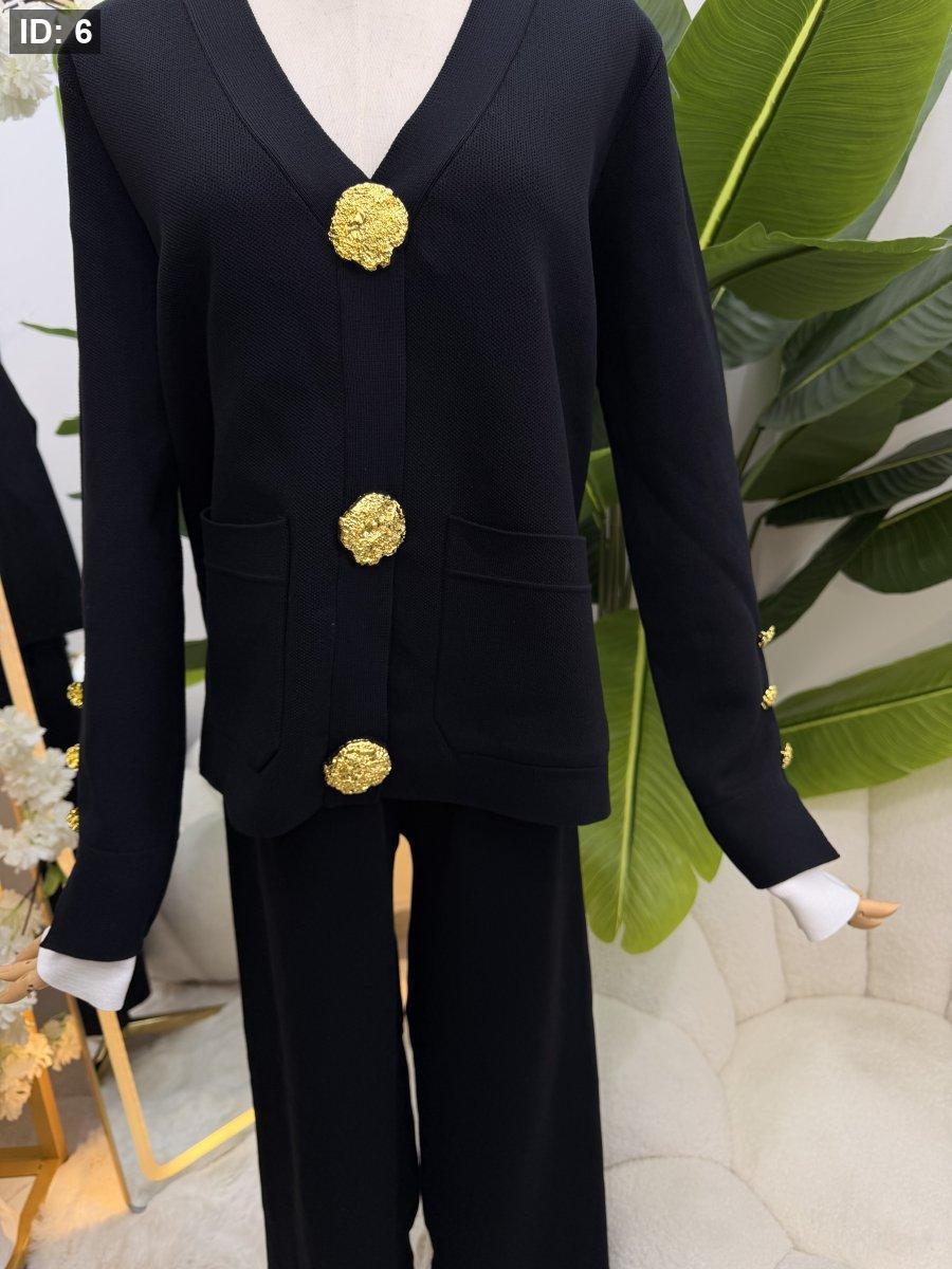 طقم صوف بازرار ذهبية - جاكيت مع بطلون عريض