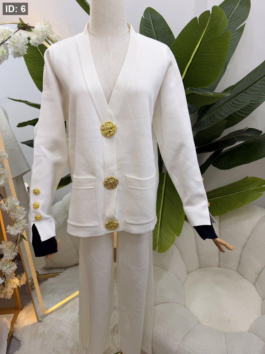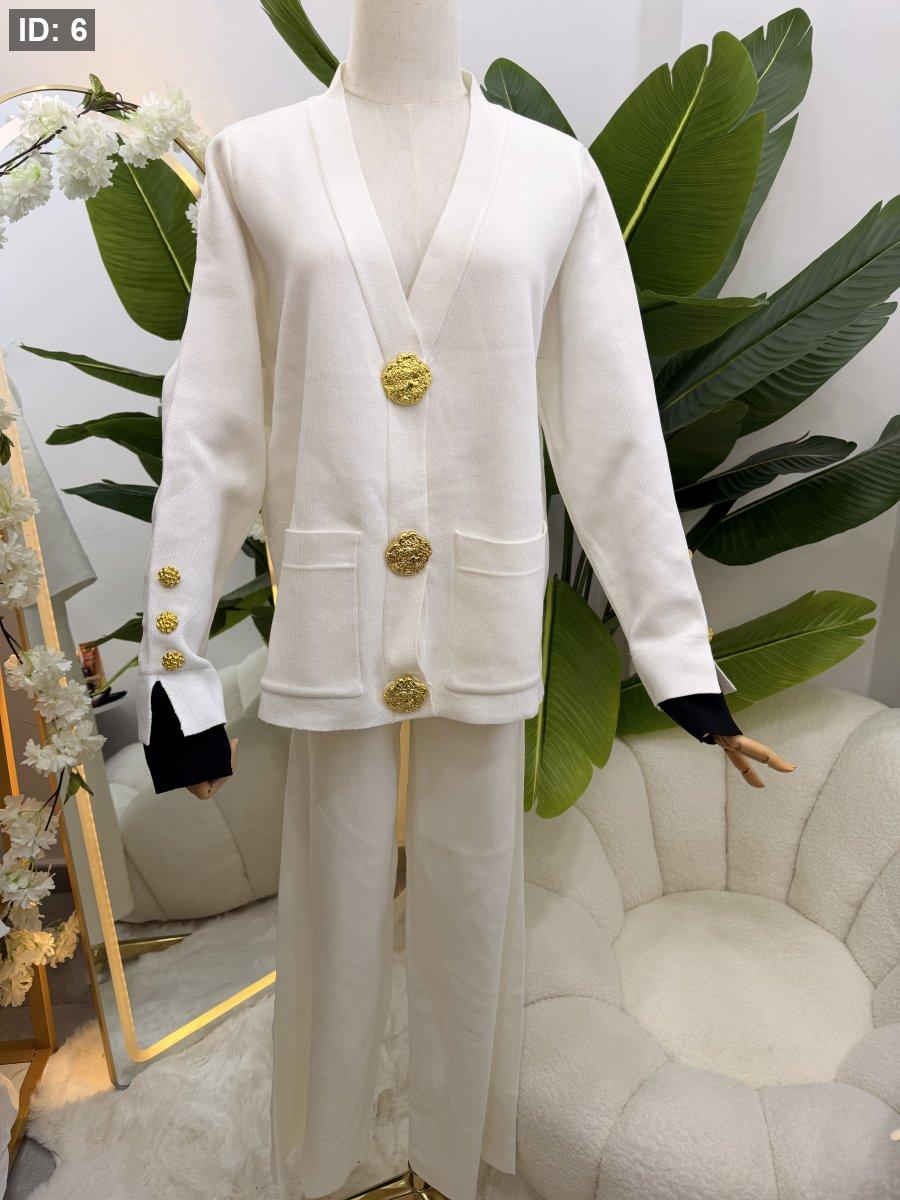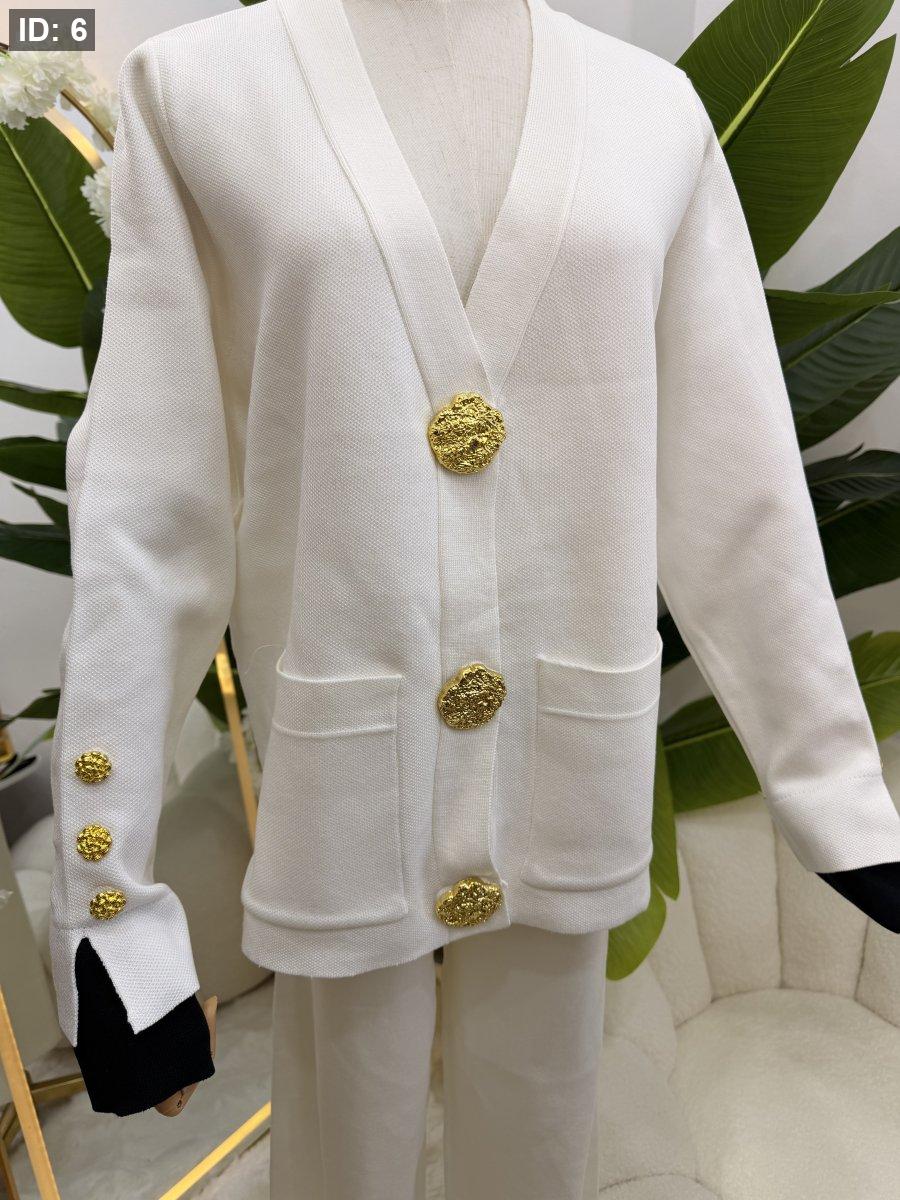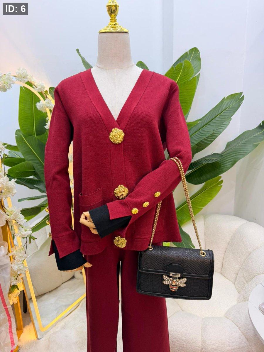 طقم صوف بازرار ذهبية - جاكيت مع بطلون عريض
